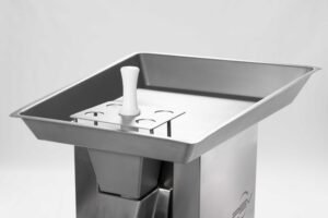 Corp exterior de tăiere ce permite lucrul deasupra unui bol de recepție sau mixer